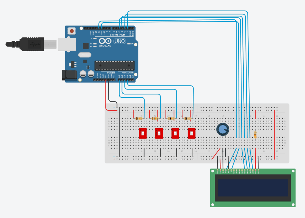 I used Tinkercad to build and program this project. Here is the electronics diagram.